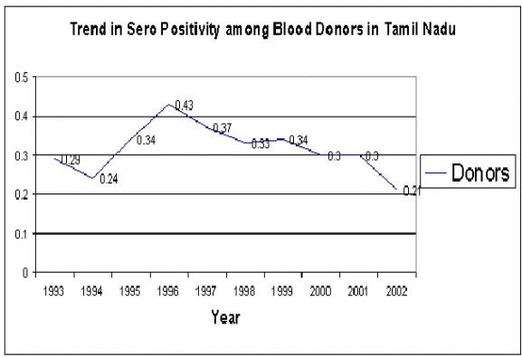 Surveillance system is essential to assess the trend in the spread of HIV infection among both High risk and low risk population and the same is being strengthened every year.? There are 24 sentinel surveillance survey sites in the State during 2002.? The latest survey reveals that the HIV sero-positivity among STD patients is 11.2% and among antenatal mothers it is 1.1%.? HIV prevalence among Injecting Drug Users (IDUs) and Homosexuals are 33.8% and 2.40% respectively.? In order to obtain more reliable information about the trend of infection in all the areas the number of sentinel sites will be increased further during this year with the requisite supply of equipment.? Behavioural Surveillance Survey done by TNSACS reveals increased condom usage, increased risk perception and reduced sexual risk behaviour.